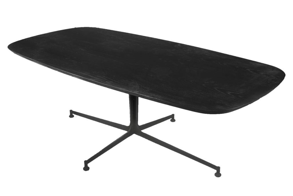 A rectangular ash wood coffee table with a black painted metal frame. Its sturdy build and sleek style make it an excellent choice for contemporary interiors.