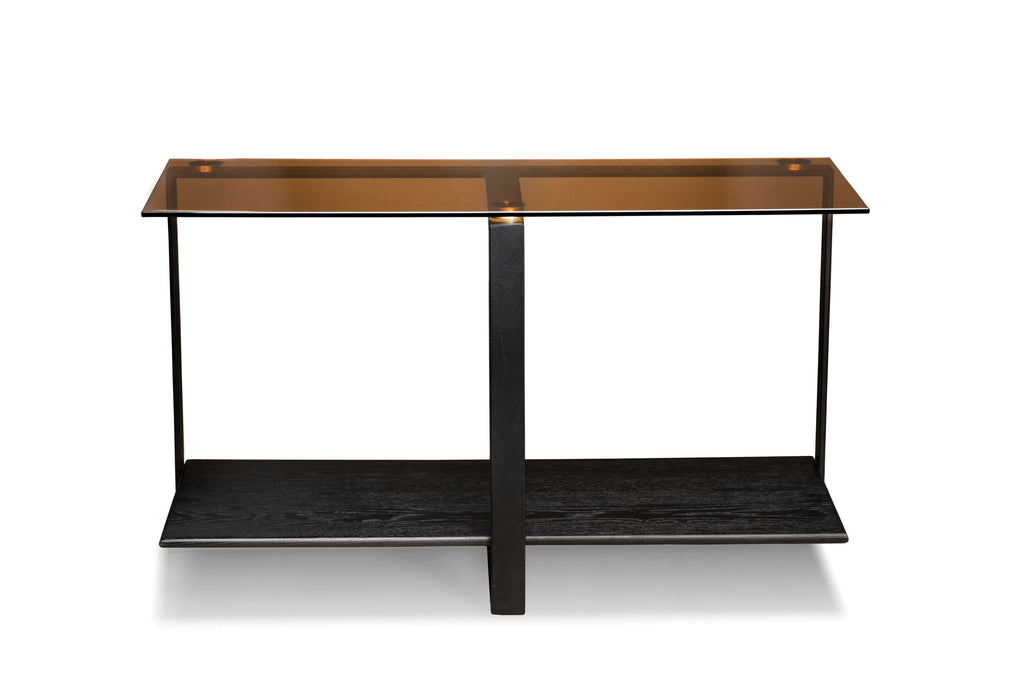 A longer version of the CT-05D. Designed with dual glass layers and a painted metal frame. Perfect for larger spaces, offering display and storage options with an elegant, minimal look.