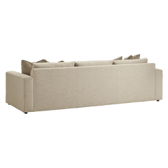 This Modern Sofa features deep seating, sleek track arms and comes with four squared throw pillows.